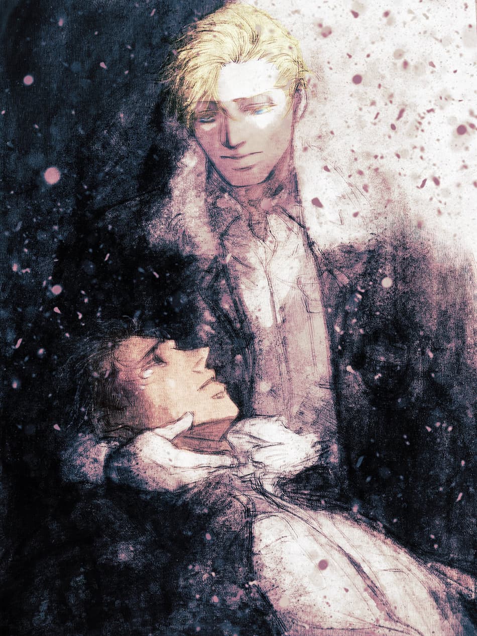 ジョンがノーマンを抱いてる方が合ってるんだろうけど、ちょうど読んでたこれ↓の影響もありノーマンがジョンを抱いてる感じにしたり