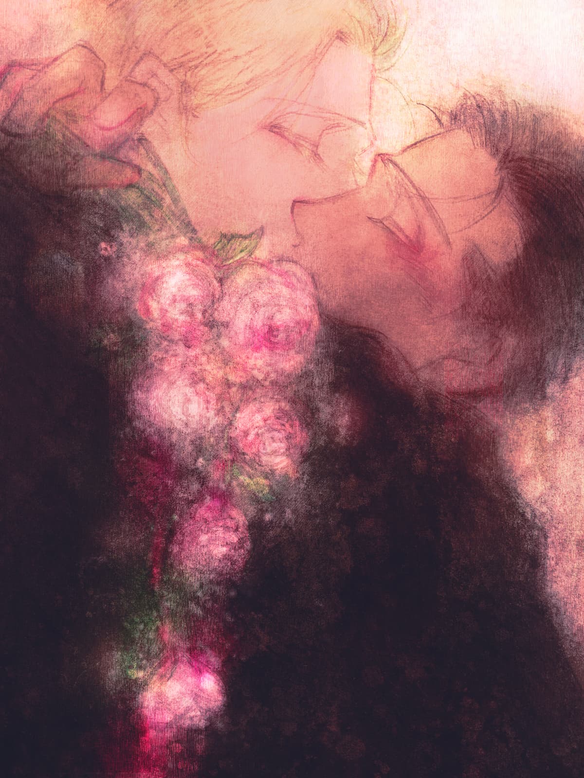 最近は目を閉じてる二人の絵ばかりになってた。何か触覚や香り、音などの感覚に没入してほしい気分だったのかもしれない